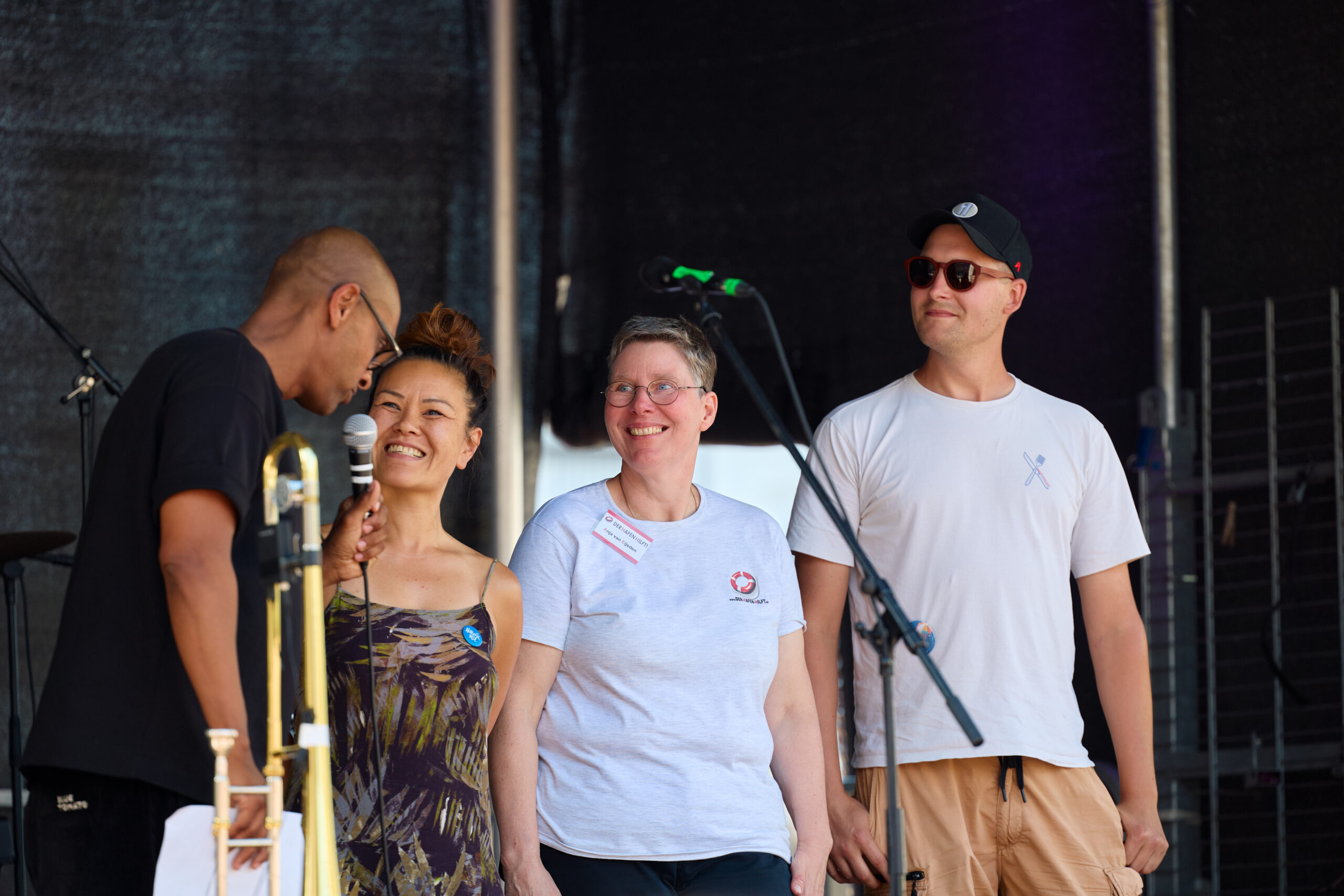 Den Rahmen für die Tafel bildet ein Bühnenprogramm, das Aufmerksamkeit für das Geschehen rund um die Tische – mit vielfältigen Aktionen, Gesprächen und Begegnungen – generiert.