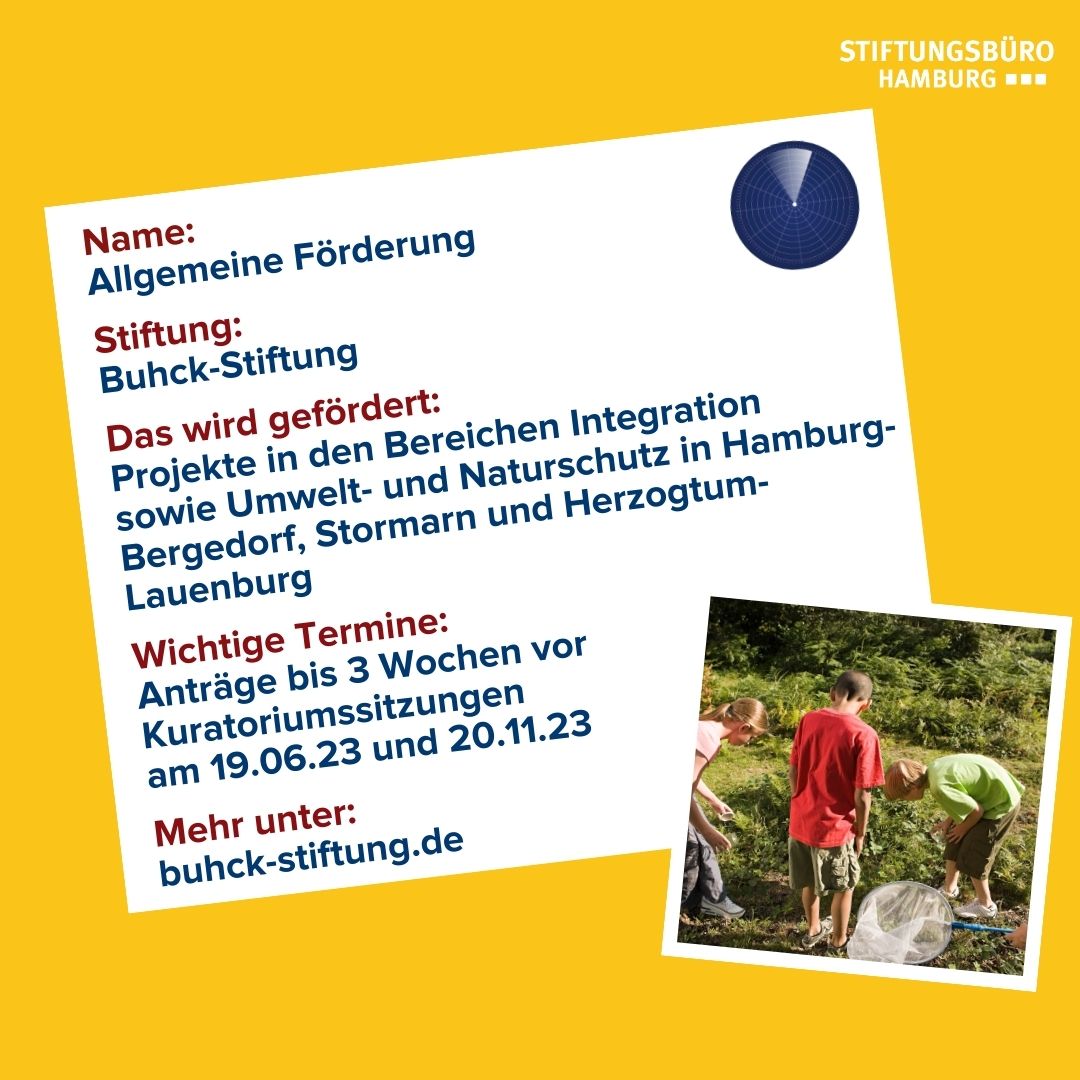 „Dem Gemeinwesen dort etwas zurückgeben, wo die Unternehmensgruppe Buhck wirtschaftlich erfolgreich tätig ist“, das war der Wunsch des Stifters Carsten Buhck. Die Buhck-Stiftung hat es sich zur Aufgabe gemacht, Projekte mit den Themenschwerpunkten Integration sowie Umwelt- und Naturschutz zu fördern. Sie möchte so Chancengleichheit für junge Menschen schaffen und ihnen mit Hilfe von Umweltbildung ein Verantwortungsbewusstsein für ihren Lebensraum vermitteln. Geförderte Projekte müssen außerdem im Bezirk Hamburg-Bergedorf oder in den Landkreisen Stormarn und Herzogtum-Lauenburg verortet sein. Anträge mit einer Fördersumme unter 5.000€ können jederzeit eingereicht und auch zwischen den Kuratoriumssitzungen bewilligt werden. Für Fördersummen ab 5.000€ gilt: Anträge sollten der Stiftung drei Wochen vor einer Kuratoriumssitzung vorliegen. Die nächsten Kuratoriumssitzungen sind am 19.06.2023 sowie am 20.11.2023. Eine Vorlage für das Antragsformular gibt es hier.
