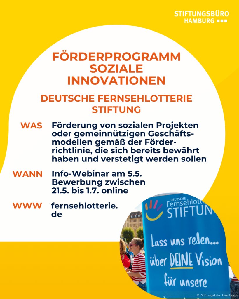 Mit dem Programm „Soziale Innovationen“ fördert die Deutsche Fernsehlotterie Stiftung gezielt Projekte, die bereits erfolgreich erprobt wurden und nun verstetigt oder weiterentwickelt werden sollen. Im Zentrum steht also nicht die erste Idee, sondern der nächste Schritt hin zu nachhaltiger Wirkung.
